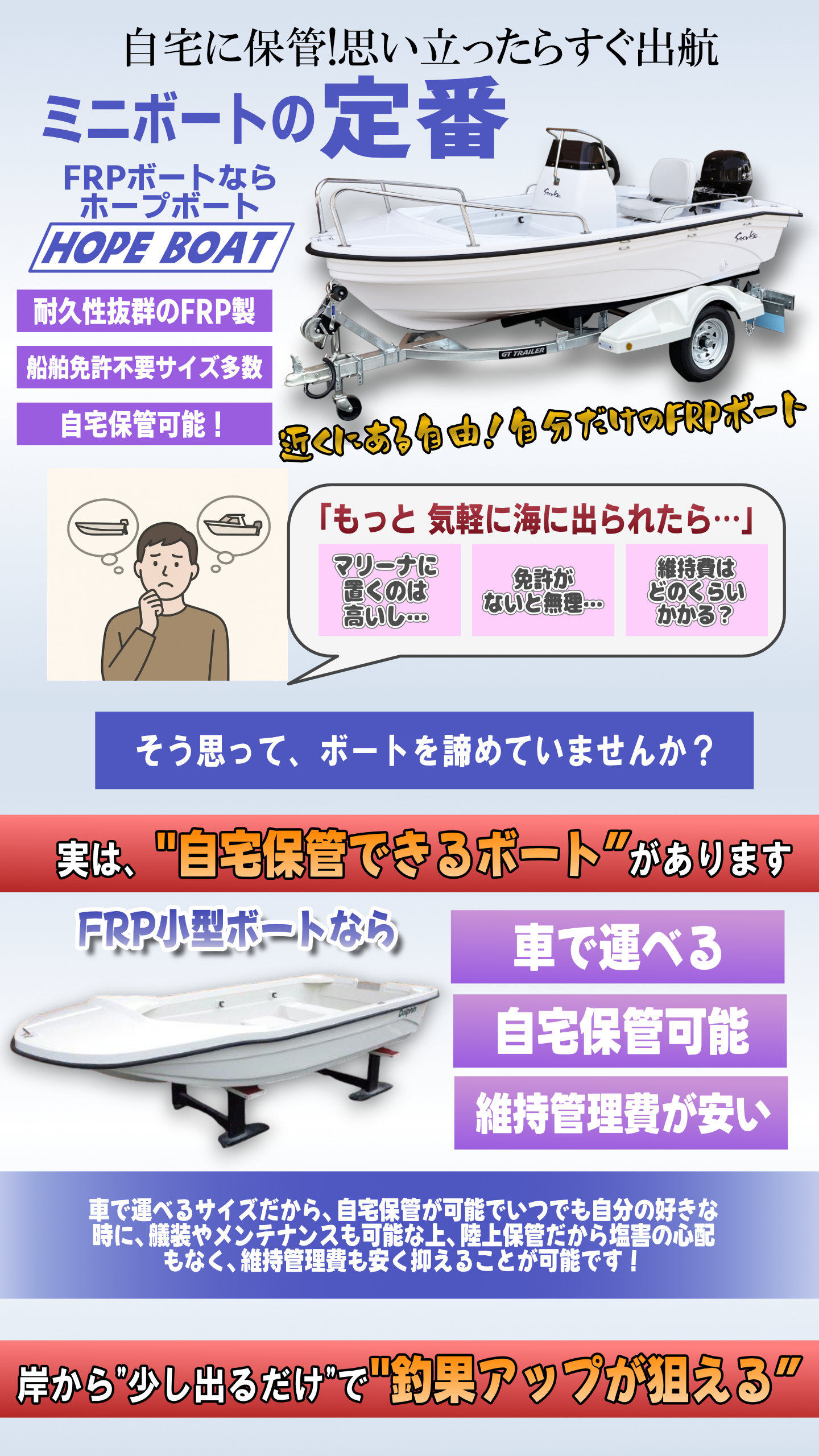 - 🛥 FRP一体成型の堅牢ボディ