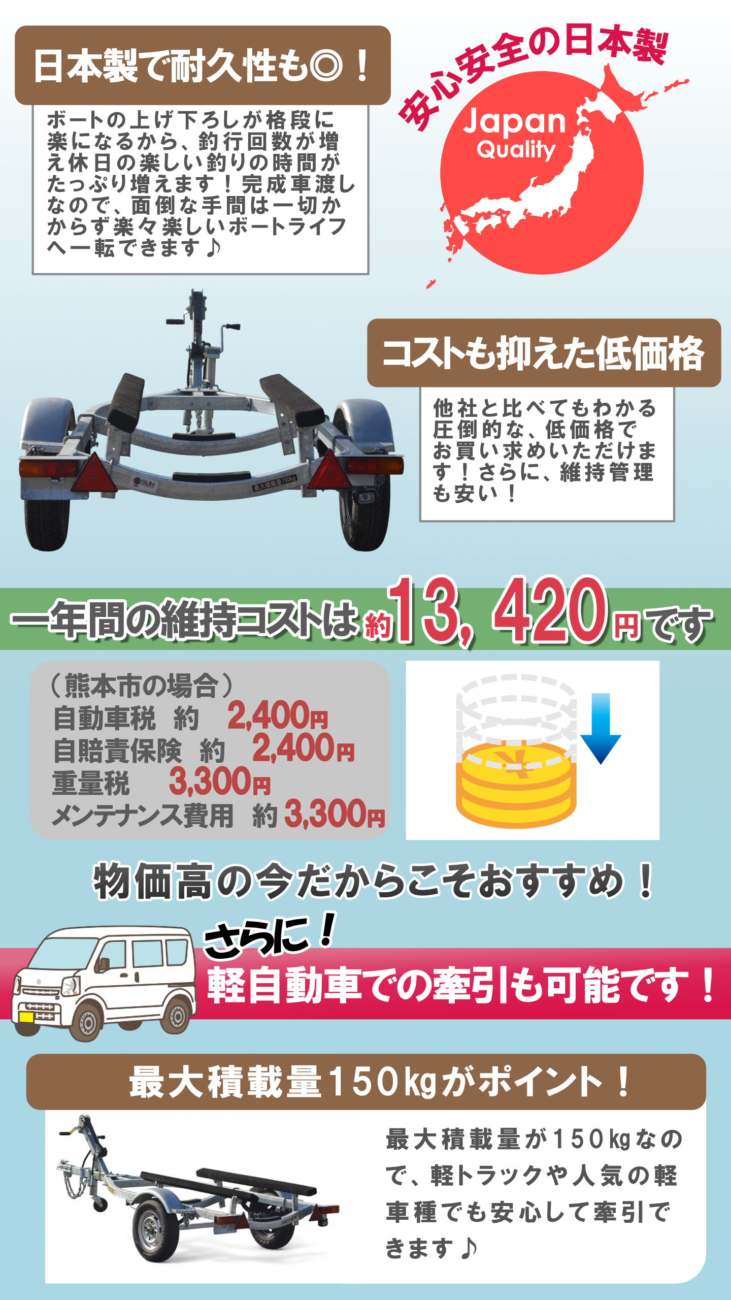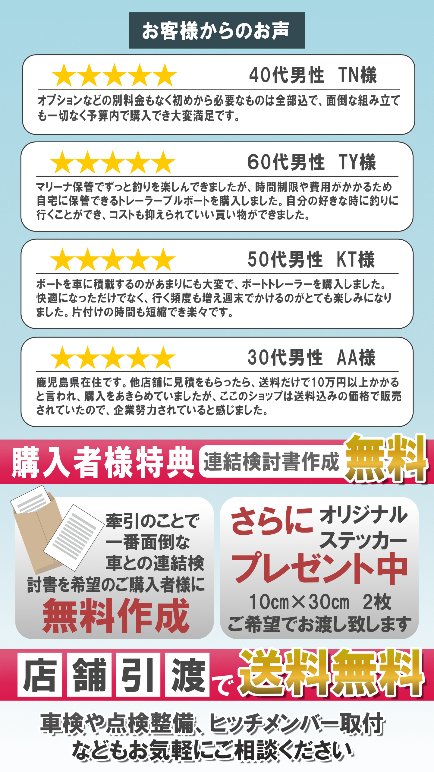 PKT150ボートトレーラー販売価格 248,900円(税込) 店頭引渡で送料無料! メールアドレス必須お名前【お問い合わせ商品】PKT150ボートトレーラー見積希望入荷について疑問質問その他メッセージ本文サイト規約に同意・承認の上で送信します。ΔPWCSEA-DOO中古PWCボートホープボートTFW17Rジョイクラフト船外機TOHATSU2馬力船外機ボートトレーラPKT150PWCトレーラーTBシリーズマルチトレーラTDシリーズFMTシリーズアドベンチャーバイクトレーラーヒッチメンバー取付加工ヒッチキャリアホームへ戻るお問合せプライバシーポリシー店舗案内電話するインスタグラム X TikTok Youtube