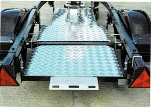 195/45R15 7J ET+35、トレーラーの足元と足場になるステップフェンダー。バイクの昇降時に足場として利用できます。