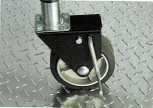 最大負荷360kgのスチール製ストッパートレーラージャッキ。タイヤ部分はソフトゴムの採用により、静かに移動させることができます。
