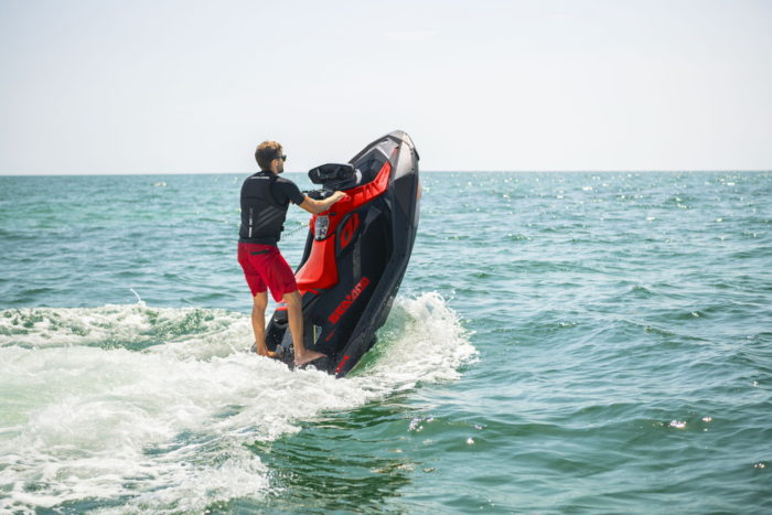 SEA-DOO独自の拡張範囲可変トリムシステムは、PWCの先端を上げたり、水に埋めたり自由自在にトリム深度を調整できるようになっています。トリックを簡単になおかつ楽しいライディングが可能です。